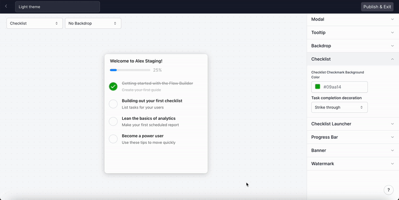 - Add a heavy backdrop to steps that include a Tooltip. This helps highlight important elements, even on a smaller mobile screen