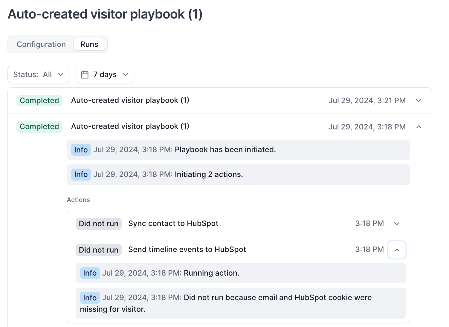 continuously syncing, and your new Playbooks will show more Runs soon as new Visitor or Account