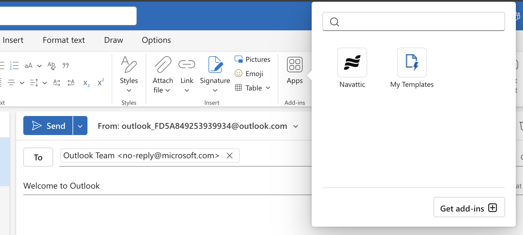 Click the Apps icon in the compose window